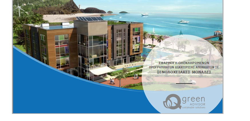 Το συγκεκριμένο έγγραφο περιλαμβάνει μια εισαγωγή για εφαρμογή ολοκληρωμένων προγραμμάτων διαχείρισης αποβλήτων σε ξενοδοχειακές μονάδες.